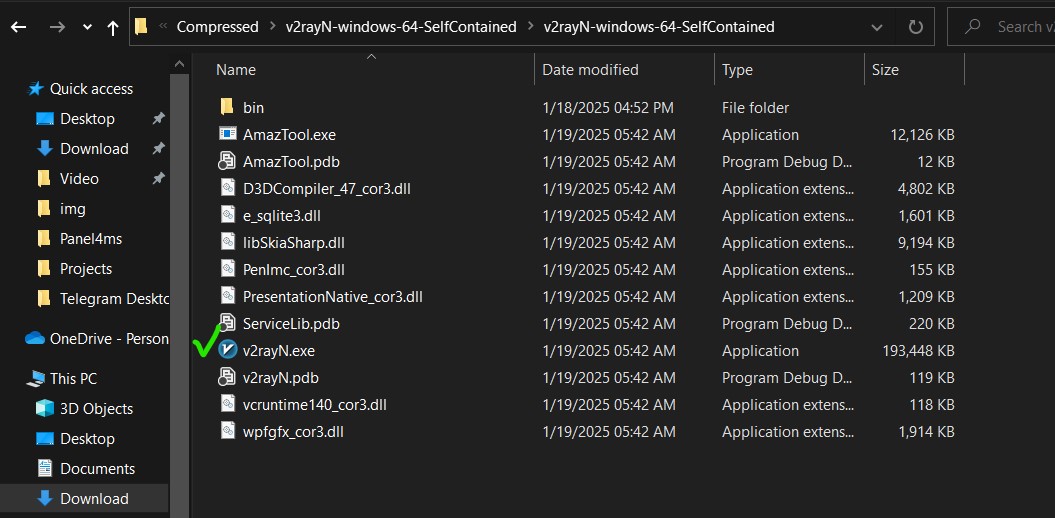 - فایل v2rayN را روی کامپیوتر یا لپتاپ ویندوزی خود از حالت زیپ خارج کنید.